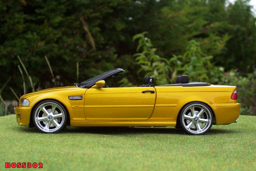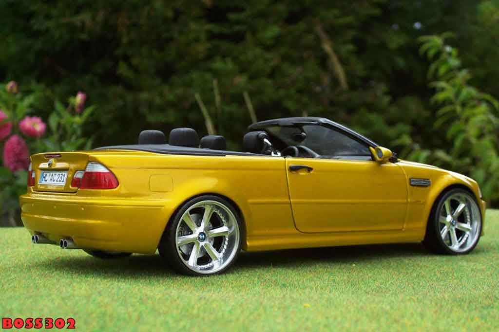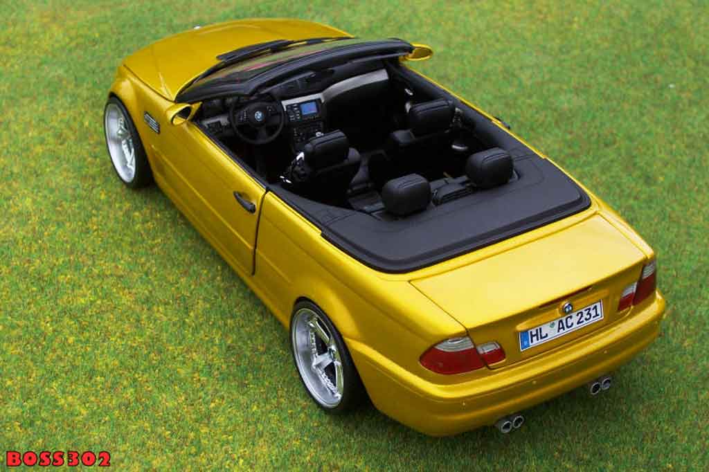 SEI QUI : AUTO IN MINIATURA > BMW MODELLINO IN MINIATURA > BMW M3 MODELLINO IN MINIATURA > BMW M3 E46 MODELLINO IN MINIATURA > Bmw M3 E46 cabriolet 1/18 Kyosho E46 cabriolet giallo candy jantes chromees 18 pouces