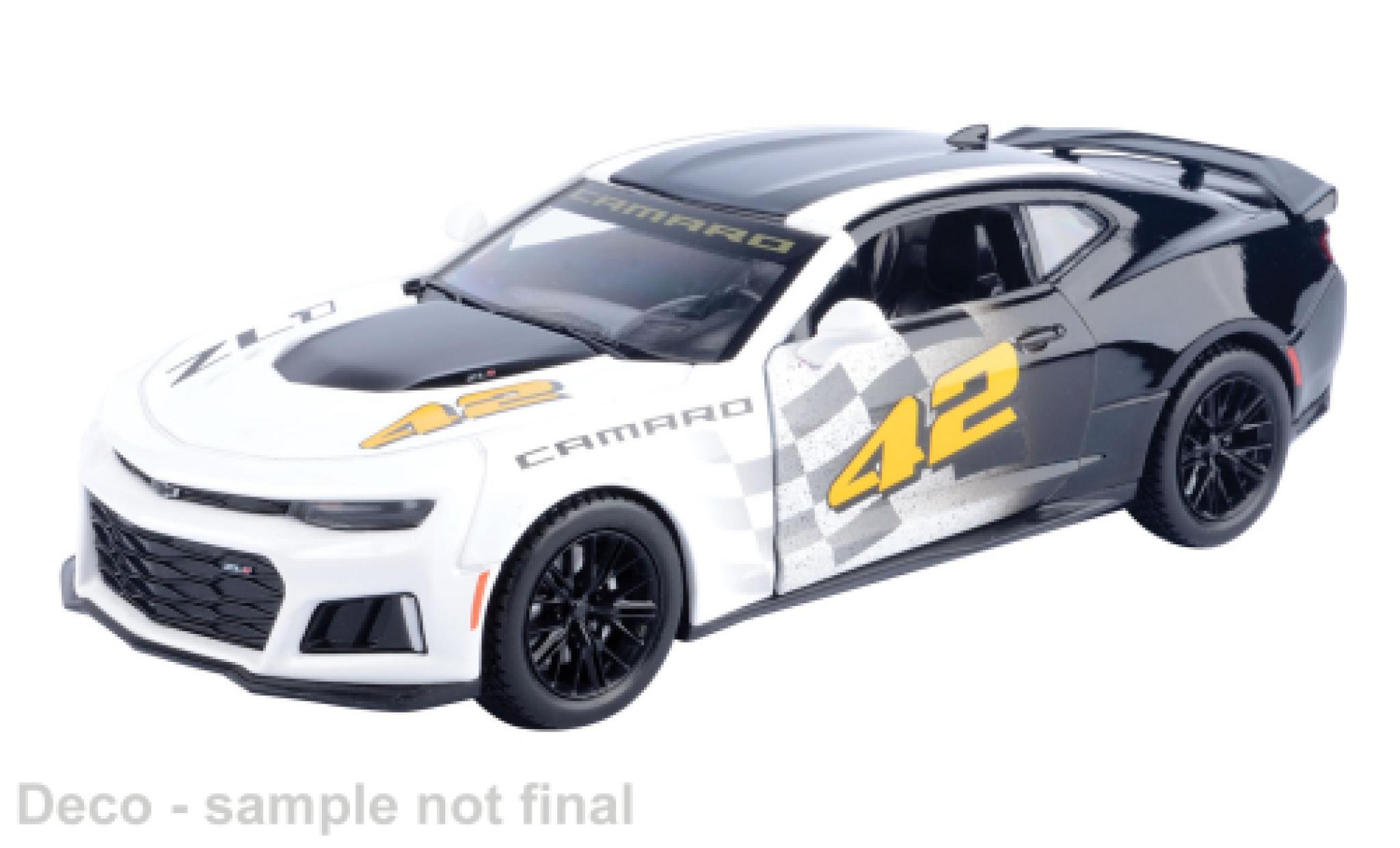 SEI QUI : AUTO IN MINIATURA > CHEVROLET MODELLINO IN MINIATURA > CHEVROLET CAMARO MODELLINO IN MINIATURA > Chevrolet Camaro 1/24 Motormax ZL1 weiss/schwarz 1:24