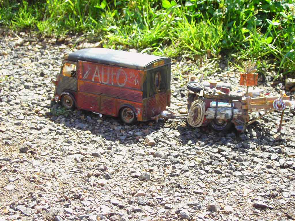 SEI QUI : AUTO IN MINIATURA > CITROEN MODELLINO IN MINIATURA > CITROEN HY MODELLINO IN MINIATURA > Citroen HY 1/18 Solido rouille et remorque