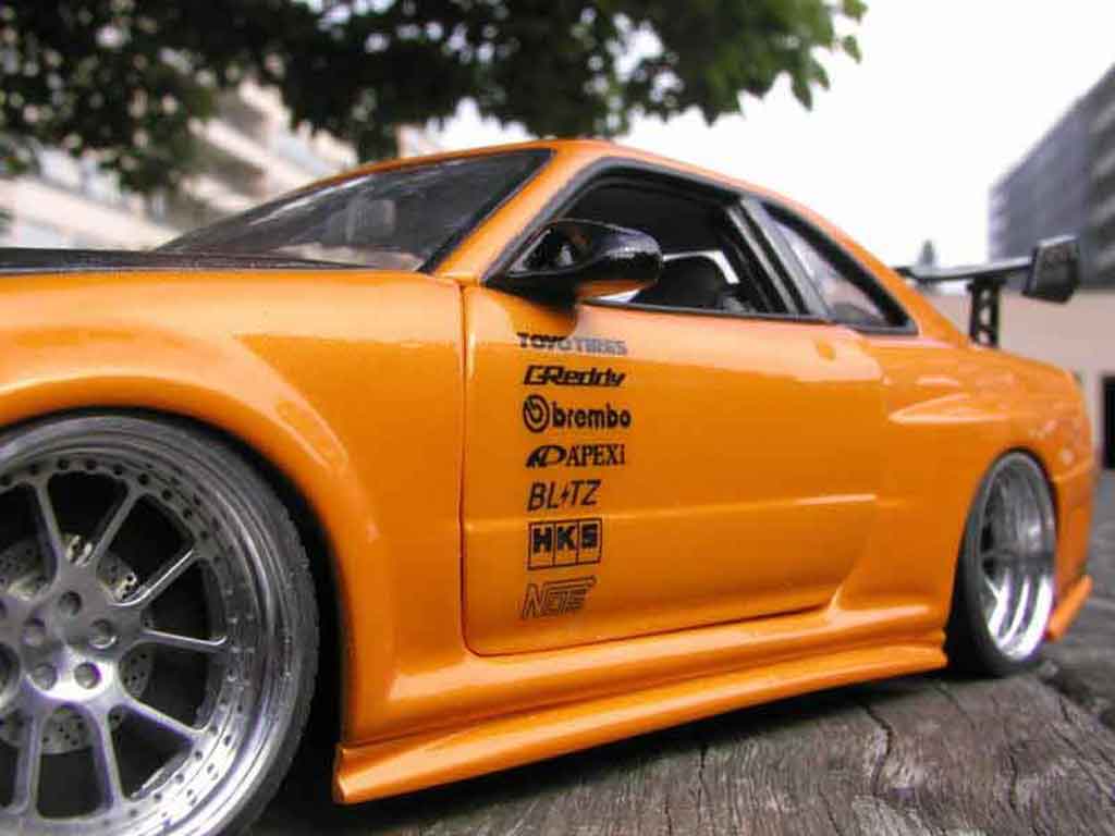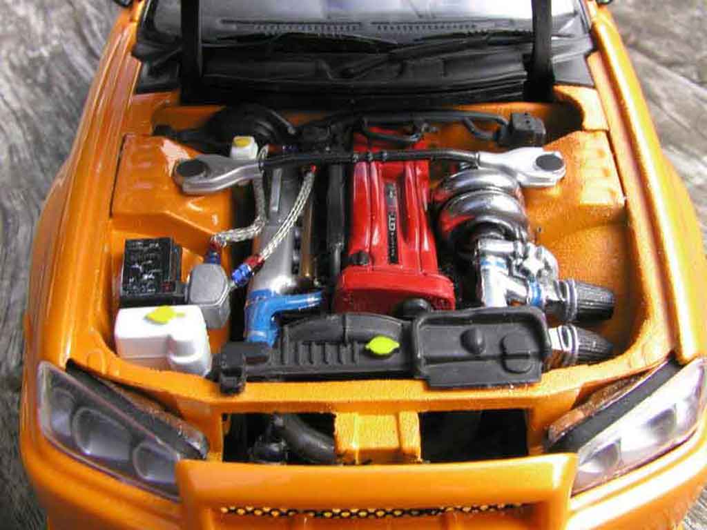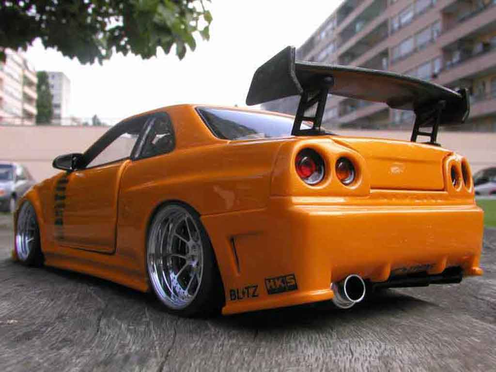 SEI QUI : AUTO IN MINIATURA > NISSAN MODELLINO IN MINIATURA > NISSAN SKYLINE MODELLINO IN MINIATURA > NISSAN SKYLINE R34 MODELLINO IN MINIATURA > Nissan Skyline R34 1/18 Autoart R34 gt aileron et capot carbone r