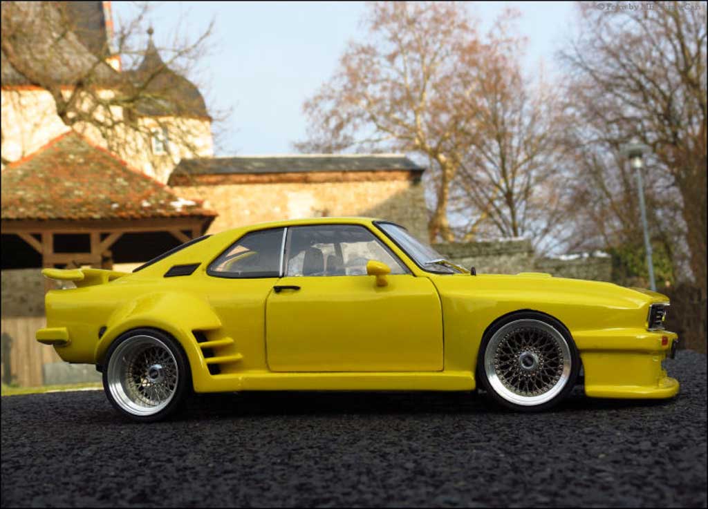 SEI QUI : AUTO IN MINIATURA > OPEL MODELLINO IN MINIATURA > OPEL MANTA MODELLINO IN MINIATURA > OPEL MANTA A MODELLINO IN MINIATURA > Opel Manta A 1/18 Norev A giallo kit carrosserie sur mesure jantes en nid d'abeilles