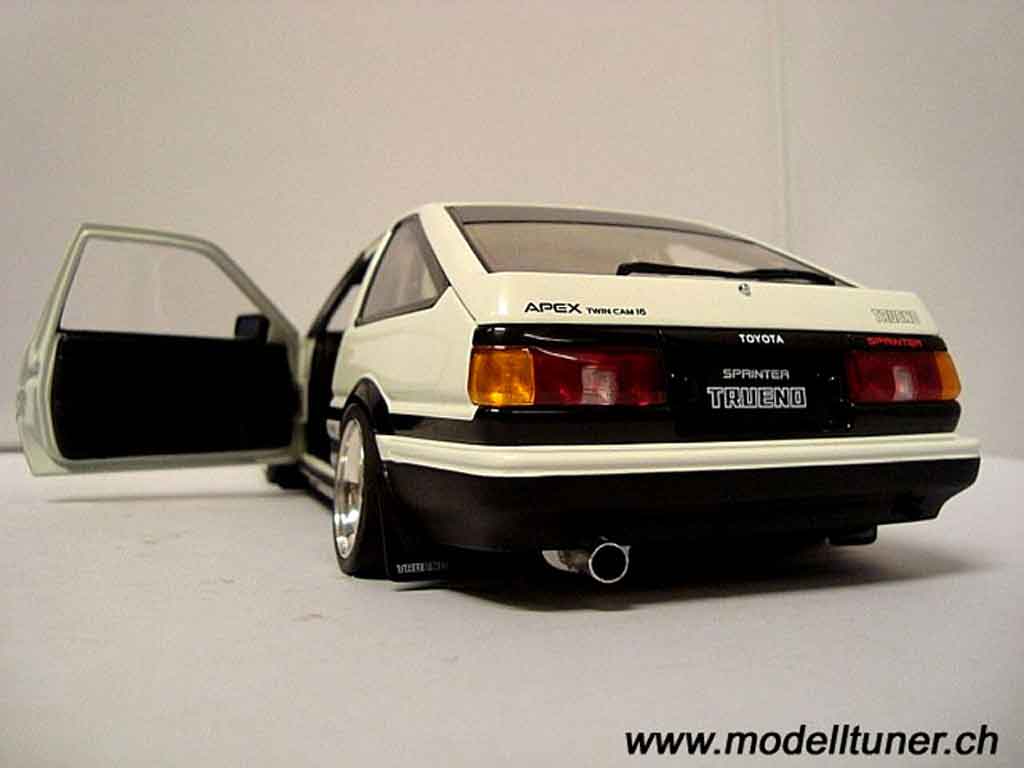Quando un'auto in miniatura è in 1/18, ci si può dire che 1 centimetro sulla miniatura rappresenta 18 sulla Toyota Trueno reale. Così un Toyota Trueno modellino in miniatura a questa scala misura circa 25 - 30 centimetri e un'auto in miniatura in scala 1/43 misura circa 10 centimetri.