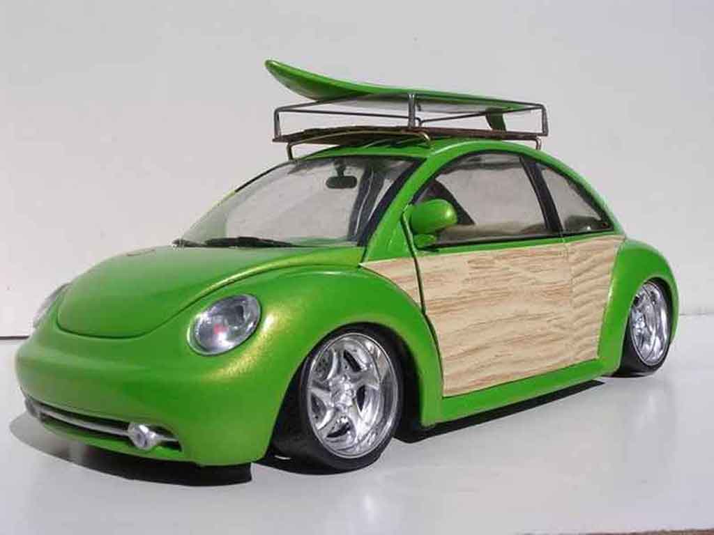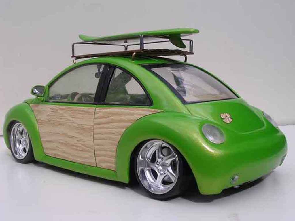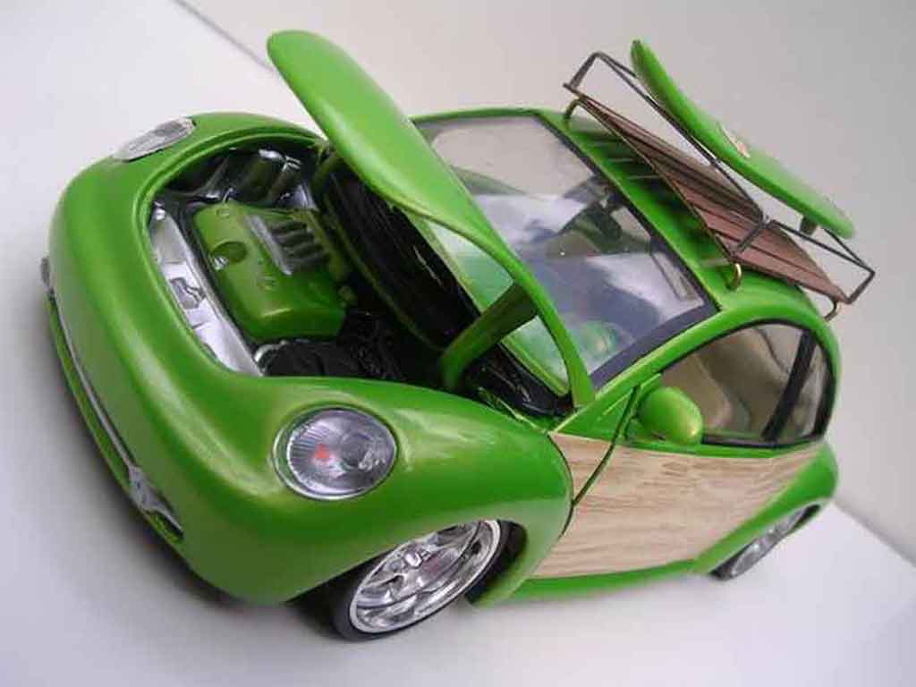 SEI QUI : AUTO IN MINIATURA > VOLKSWAGEN MODELLINO IN MINIATURA > VOLKSWAGEN NEW BEETLE MODELLINO IN MINIATURA > Volkswagen New Beetle 1/18 Burago woody green surf california